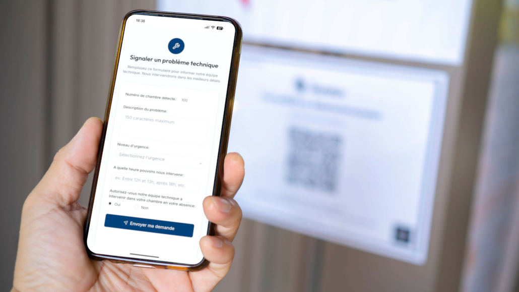 Oui. Les clients peuvent signaler un problème depuis n’importe quel smartphone en scannant simplement le QR code présent dans la chambre.
